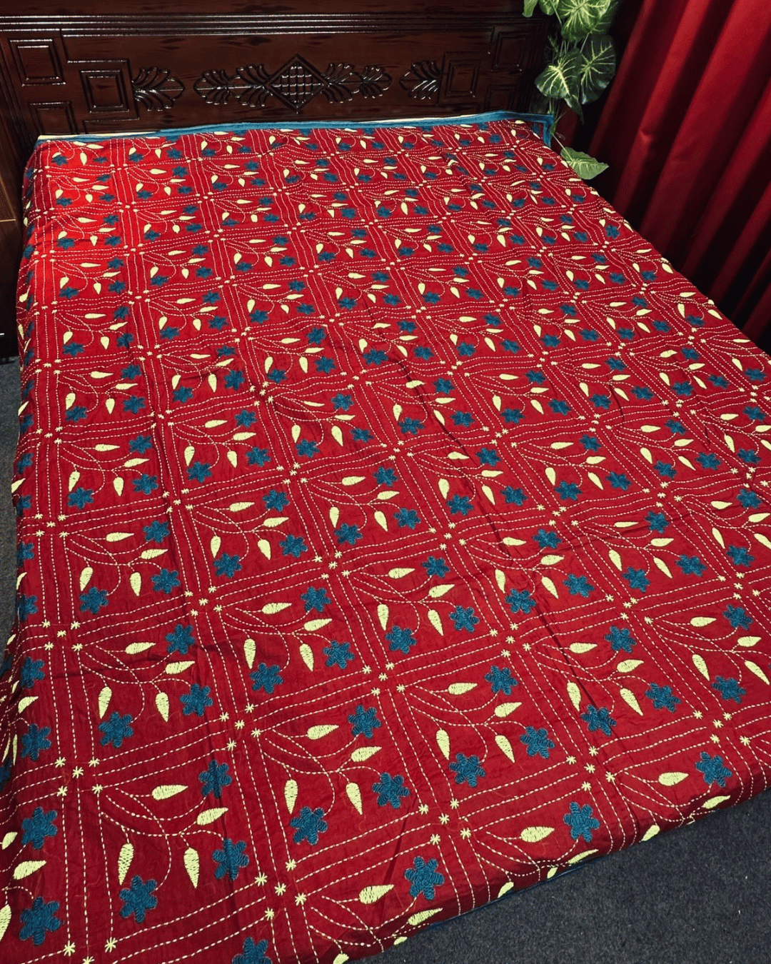 মেরুন কালার গাছফুল নকশি কাঁথা