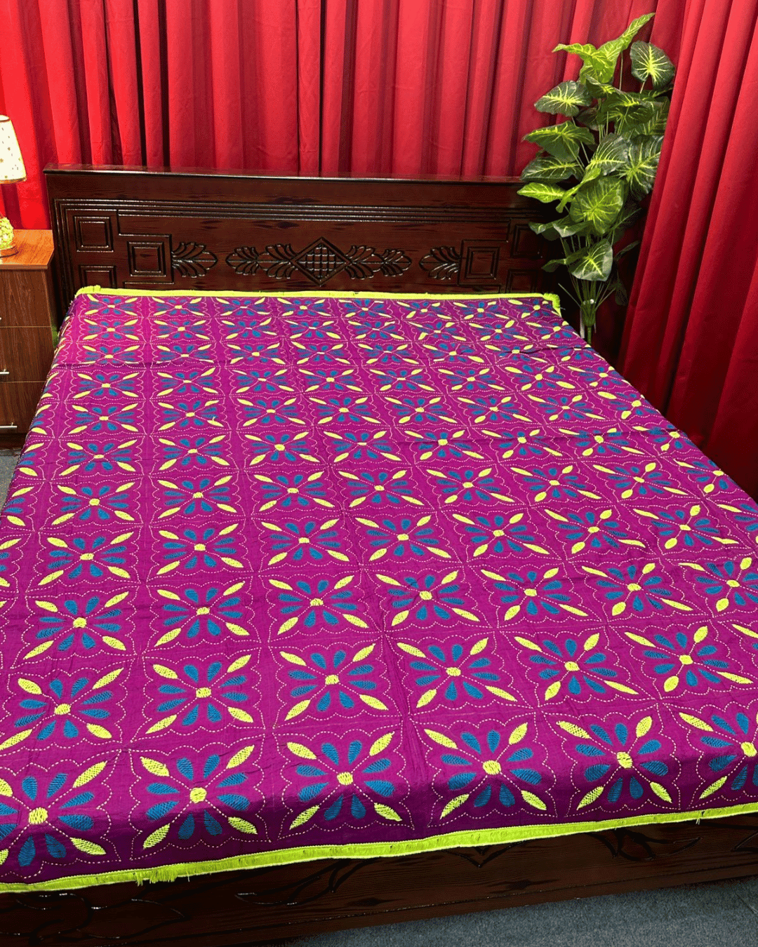 পার্পেল কালার গাছফুল নকশি কাঁথা